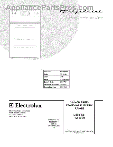 Parts for Frigidaire FEF369HSB: 01 - Cover Parts