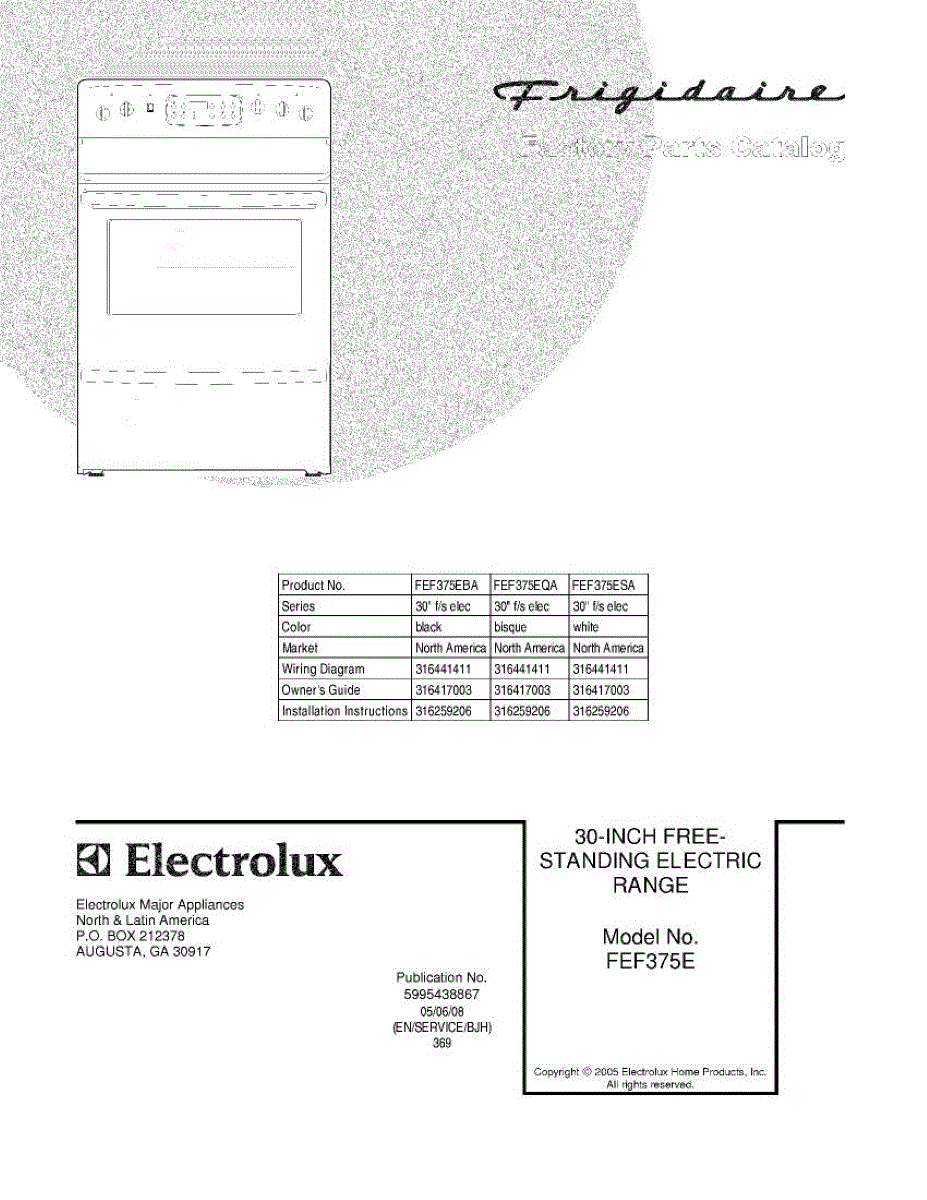 Parts for Frigidaire FEF375ESA: 01 - Cover Parts