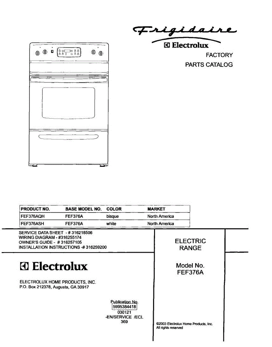 Parts for Frigidaire FEF376AQH: 01 - Cover Parts