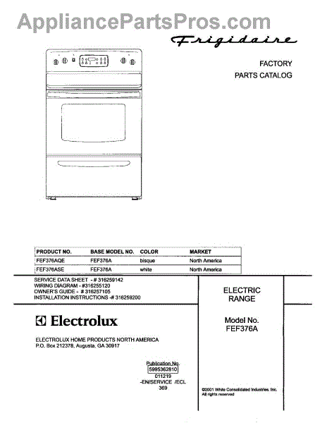 Parts for Frigidaire FEF376ASE: 01 - Cover Parts