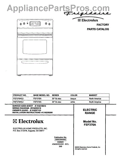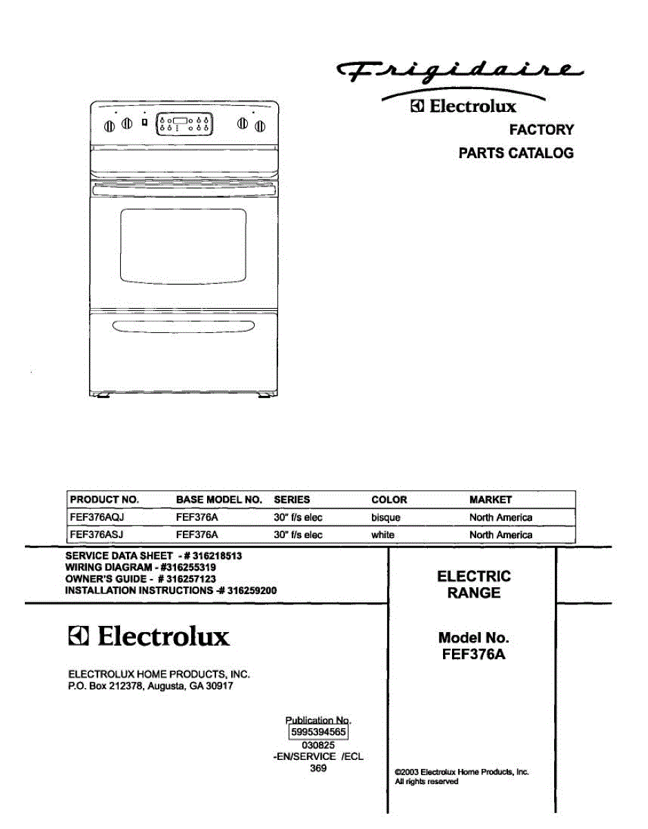 Parts for Frigidaire FEF376ASJ: 01 - Cover Parts