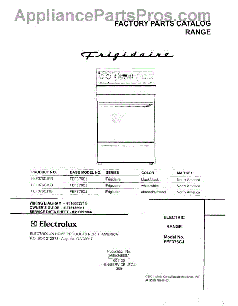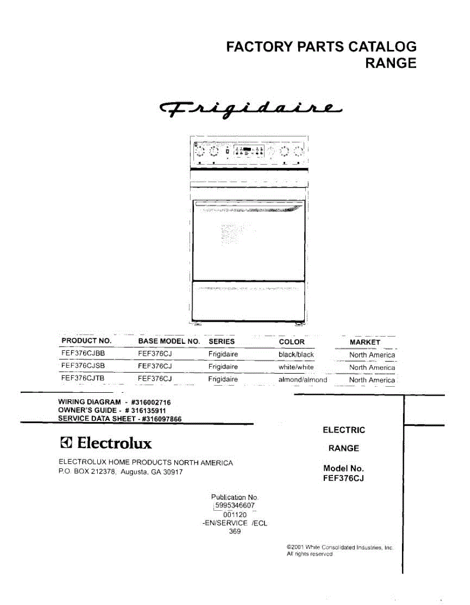 Parts for Frigidaire FEF376CJTB: 01 - Cover Parts