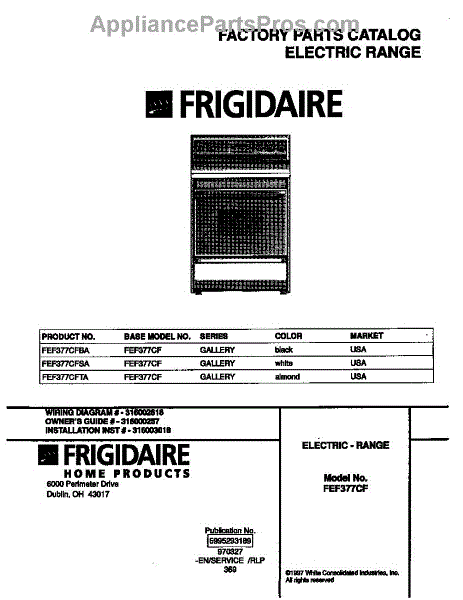 Parts for Frigidaire FEF377CFTA: 01 - Cover Parts