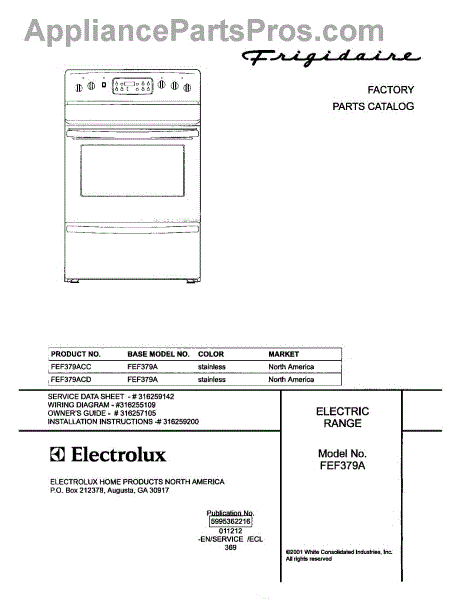 Parts for Frigidaire FEF379ACD: 01 - Cover Parts