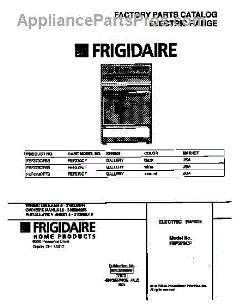 Parts for Frigidaire FEF379CFTB: 01 - Cover Parts