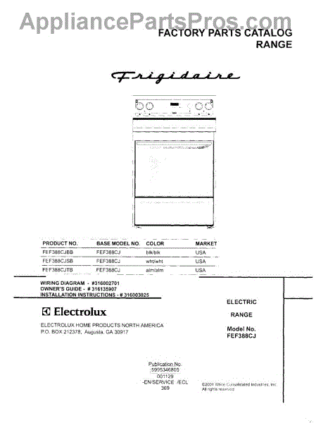 Parts for Frigidaire FEF388CJSB: 01 - Cover Parts