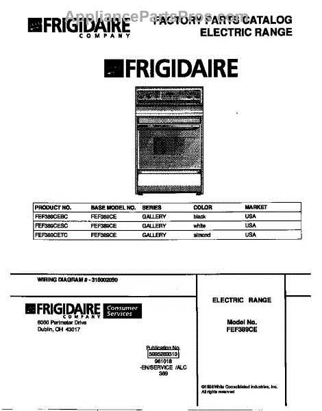 Parts for Frigidaire FEF389CETC: 01 - Cover Parts