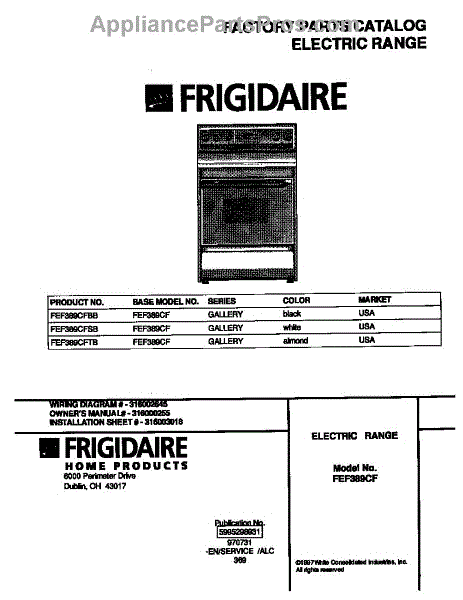Parts for Frigidaire FEF389CFSB: 01 - Cover Parts