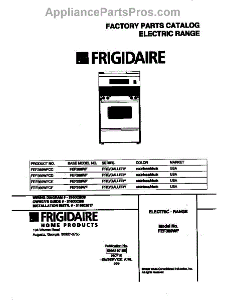 Parts for Frigidaire FEF389WFCF: 01 - Cover Parts