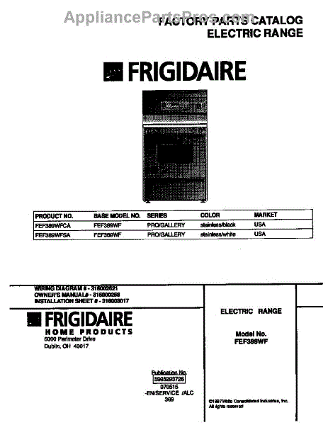 Parts for Frigidaire FEF389WFSA: 01 - Cover Parts