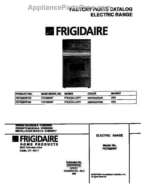 Parts for Frigidaire FEF389WFSB: 01 - Cover Parts