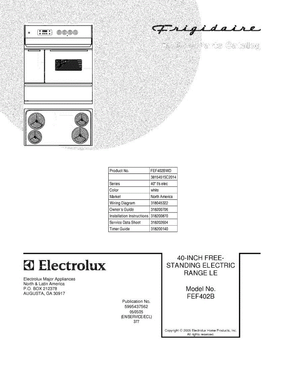 Parts for Frigidaire FEF402BWD: 01 - Cover Parts