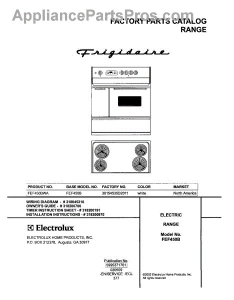 Frigidaire Range Parts