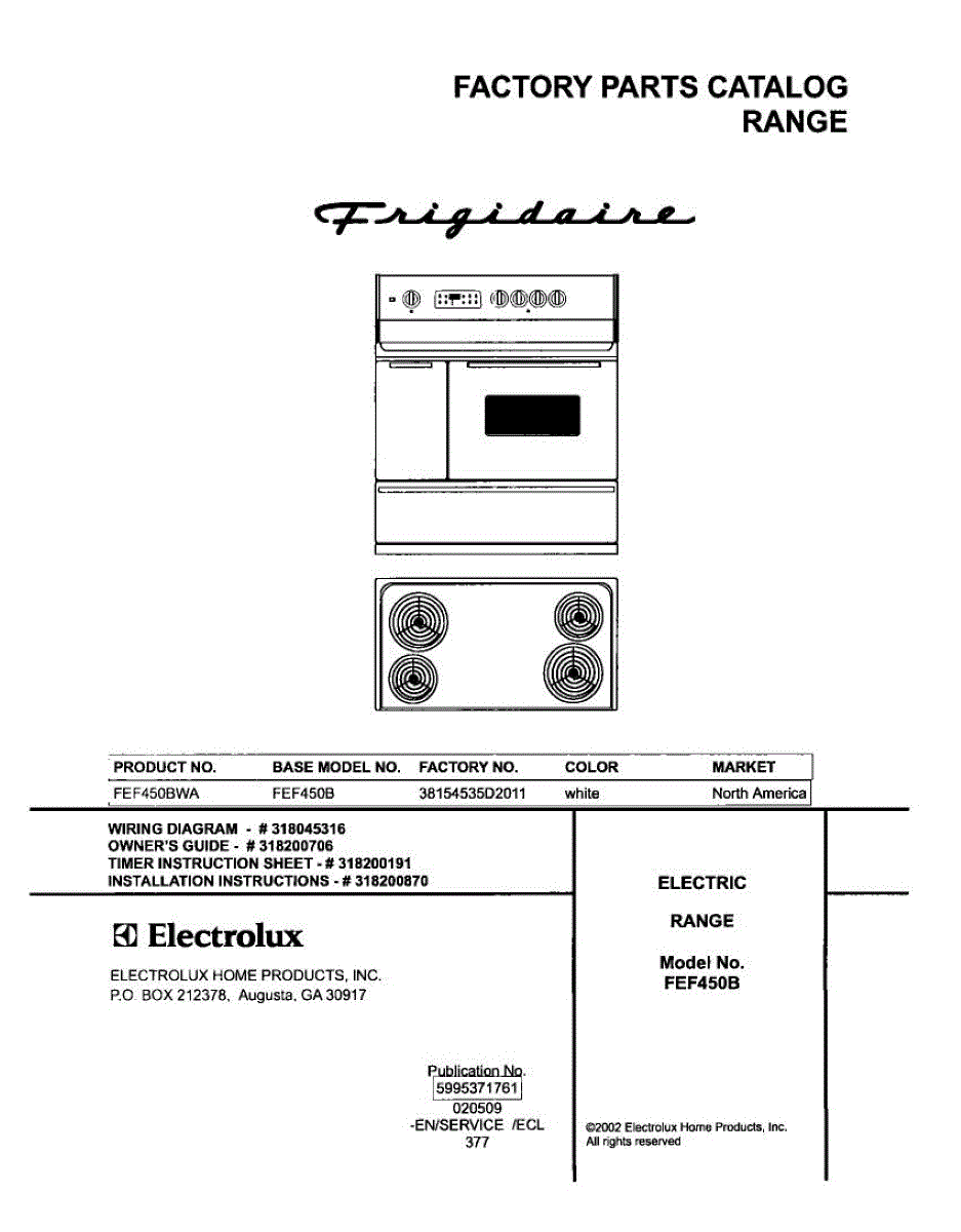 Parts for Frigidaire FEF450BWA: 01 - Cover Parts