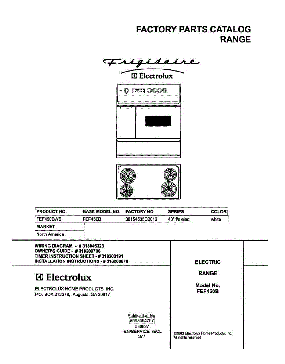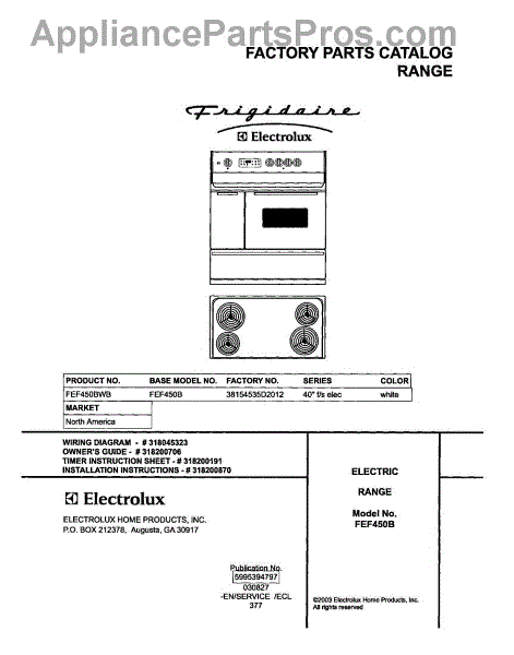 Parts for Frigidaire FEF450BWB: 01 - Cover Parts