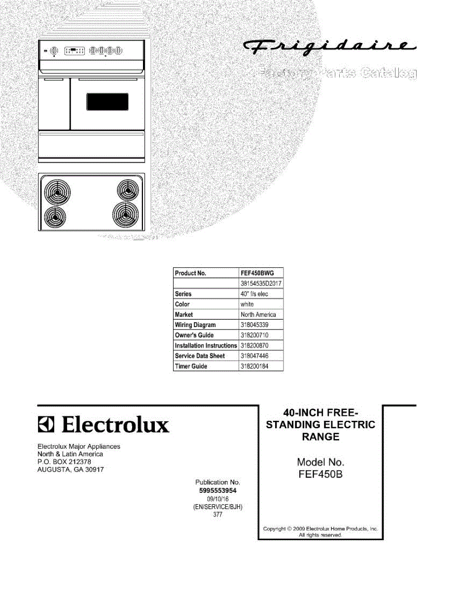 Parts for Frigidaire FEF450BWG: 01 - Cover Parts