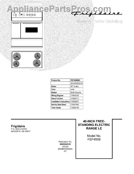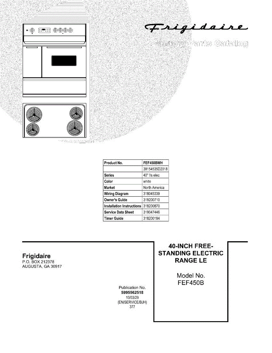 Parts for Frigidaire FEF450BWH: 01 - Cover Parts