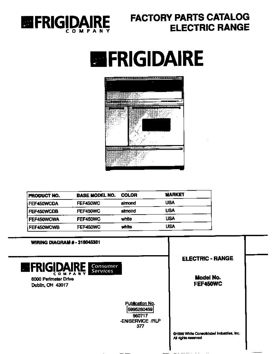 Parts for Frigidaire FEF450WCWA: 01 - Cover Parts