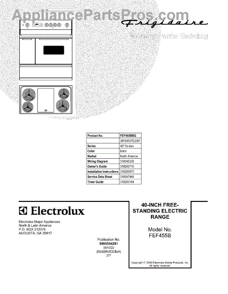 Parts for Frigidaire FEF455BBG: 01 - Cover Parts