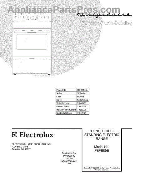 Parts for Frigidaire FEFB89ECA: 01 - Cover Parts