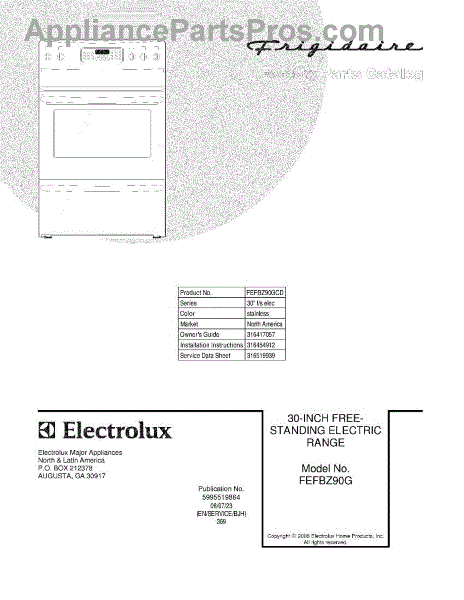 Parts for Frigidaire FEFBZ90GCD: 01 - Cover Parts