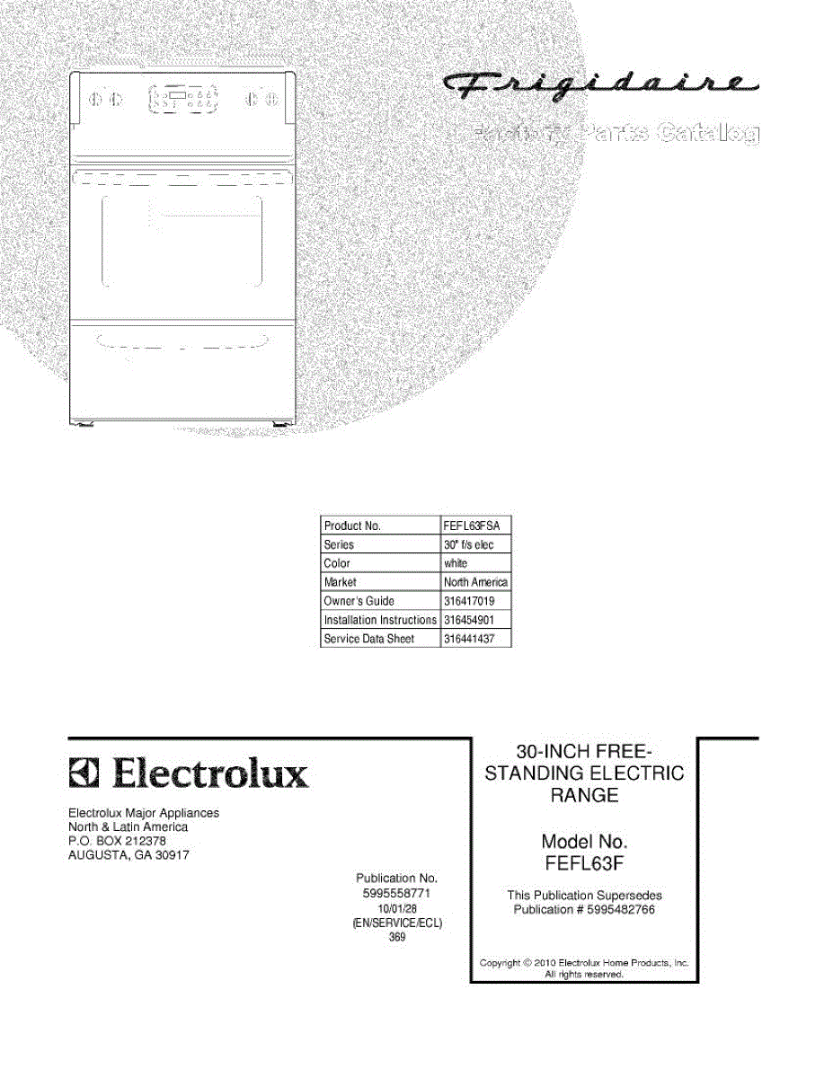 Parts for Frigidaire FEFL63FSA: 01 - Cover Parts