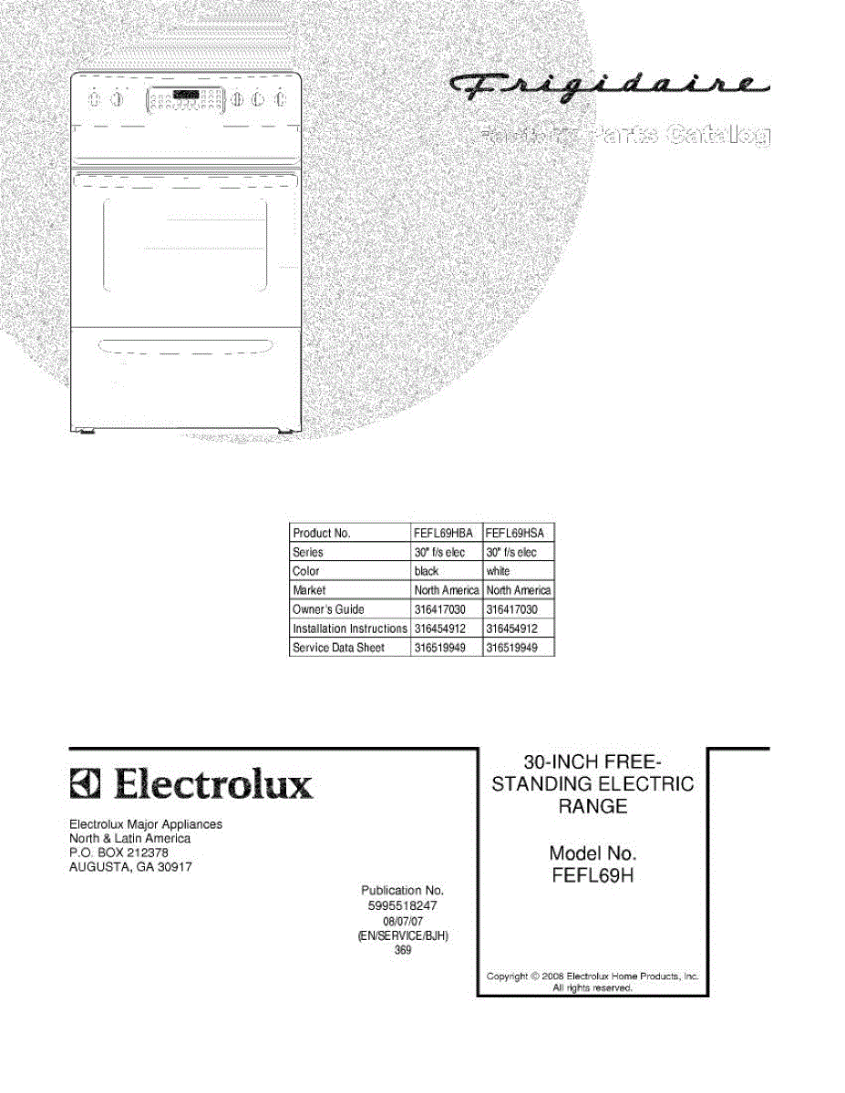 Parts for Frigidaire FEFL69HBA: 01 - Cover Parts