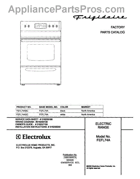 Parts for Frigidaire FEFL74ABC: 01 - Cover Parts