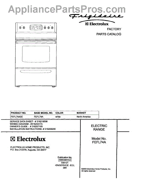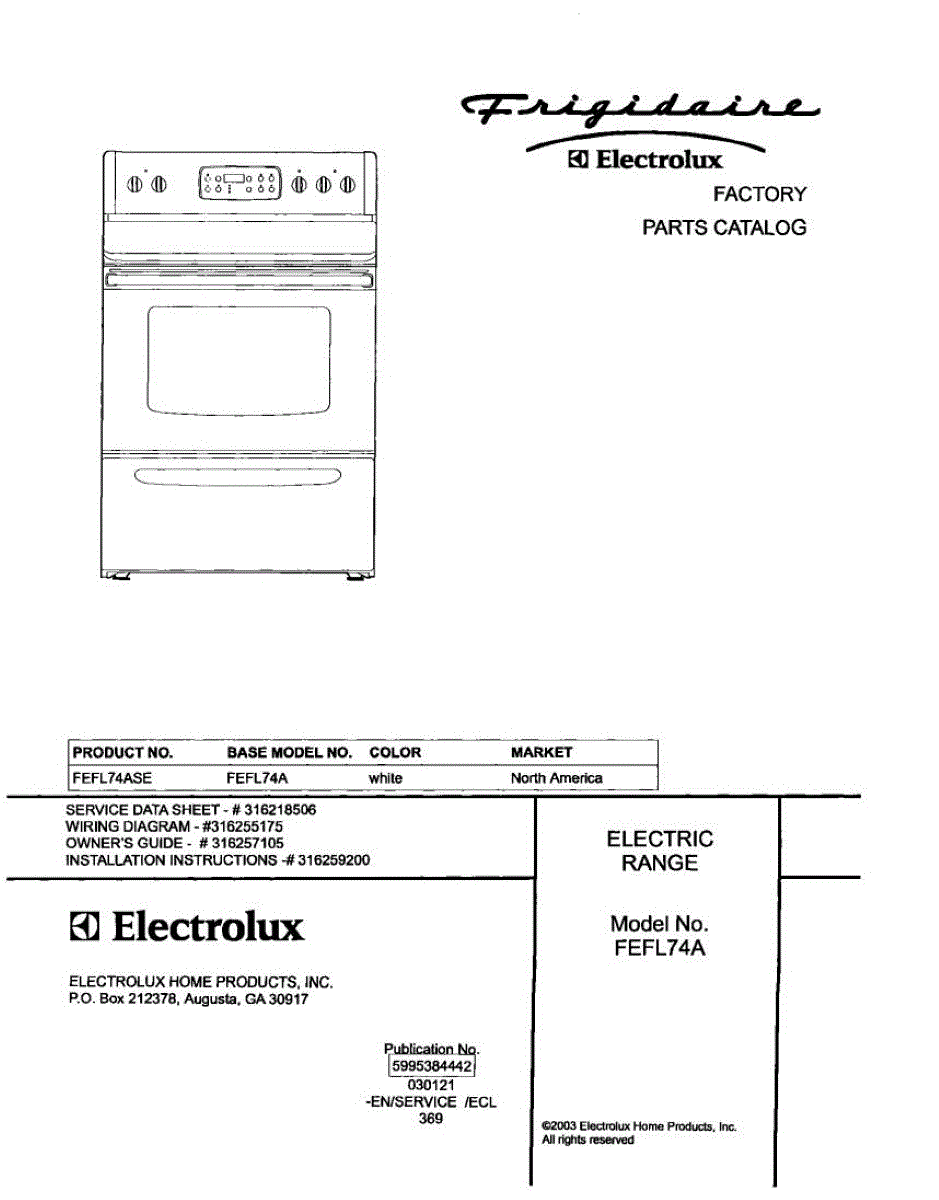 Parts for Frigidaire FEFL74ASE: 01 - Cover Parts