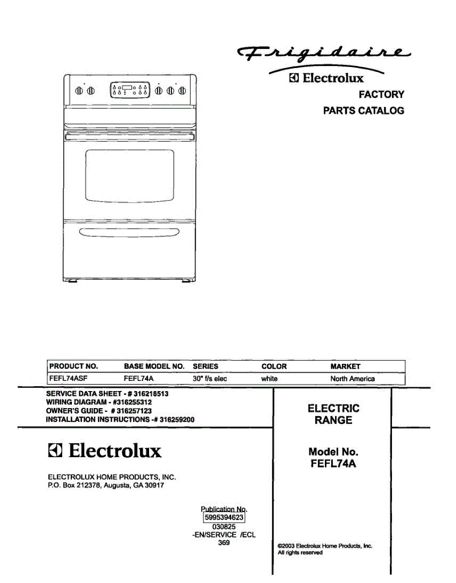 Parts for Frigidaire FEFL74ASF: 01 - Cover Parts