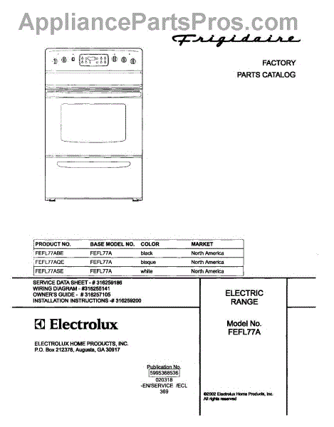 Parts for Frigidaire FEFL77AQE: 01 - Cover Parts