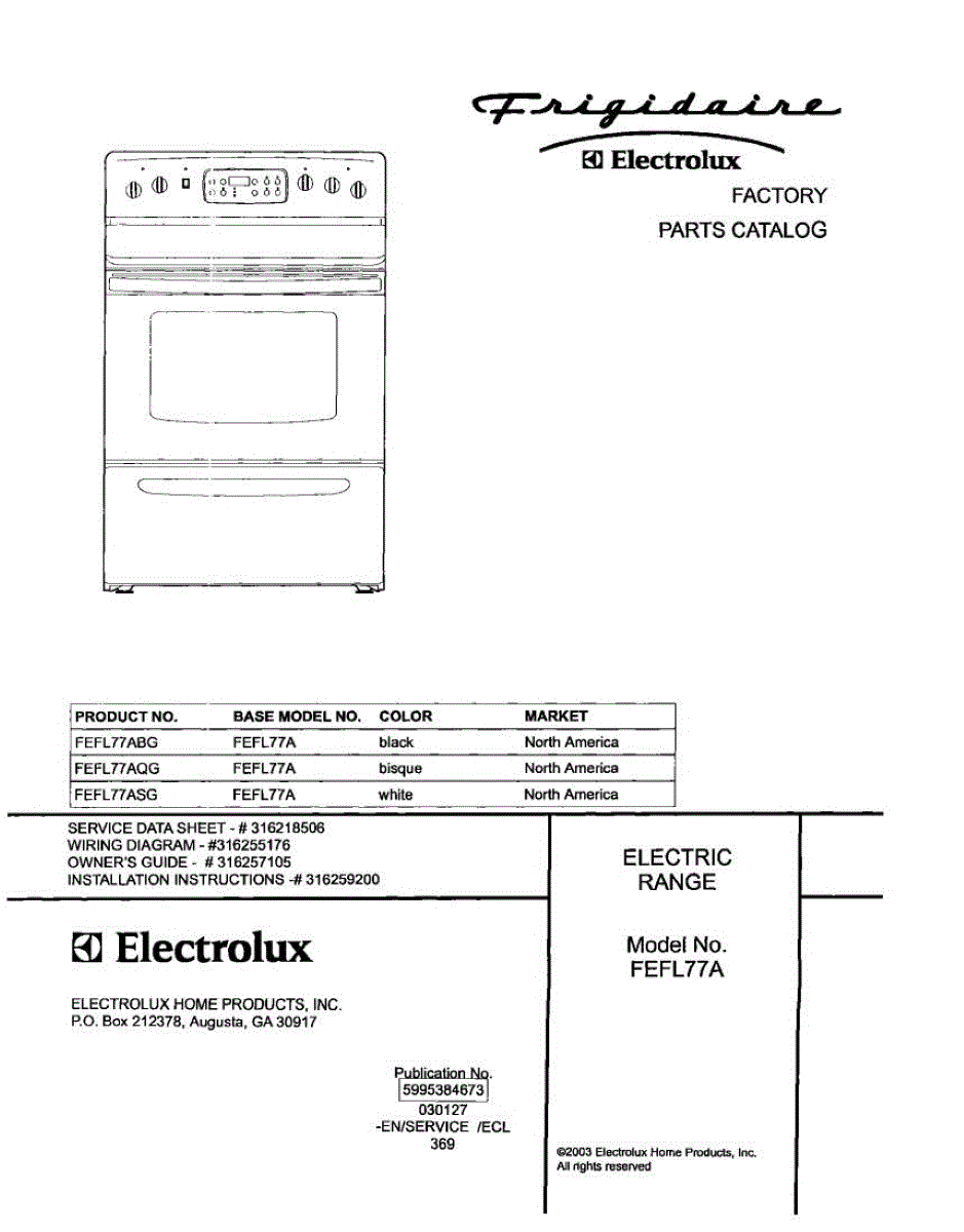 Parts for Frigidaire FEFL77ASG: 01 - Cover Parts