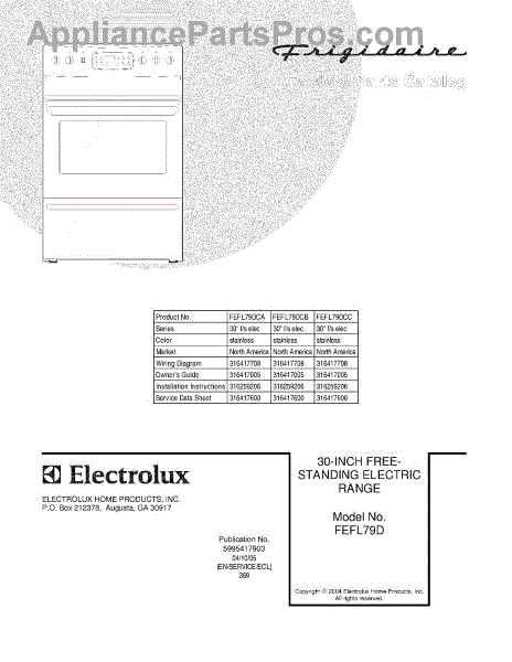 Parts for Frigidaire FEFL79DCB: 01 - Cover Parts