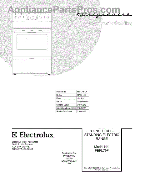 Parts for Frigidaire FEFL79FCA: 01 - Cover Parts