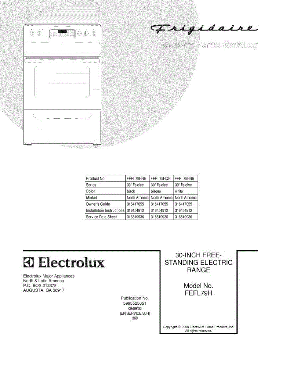 Parts for Frigidaire FEFL79HQB: 01 - Cover Parts