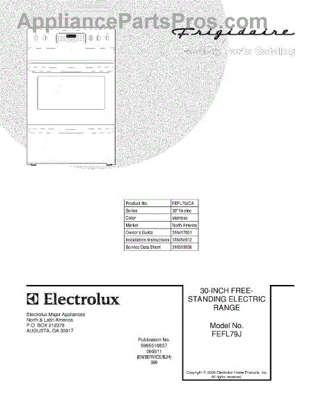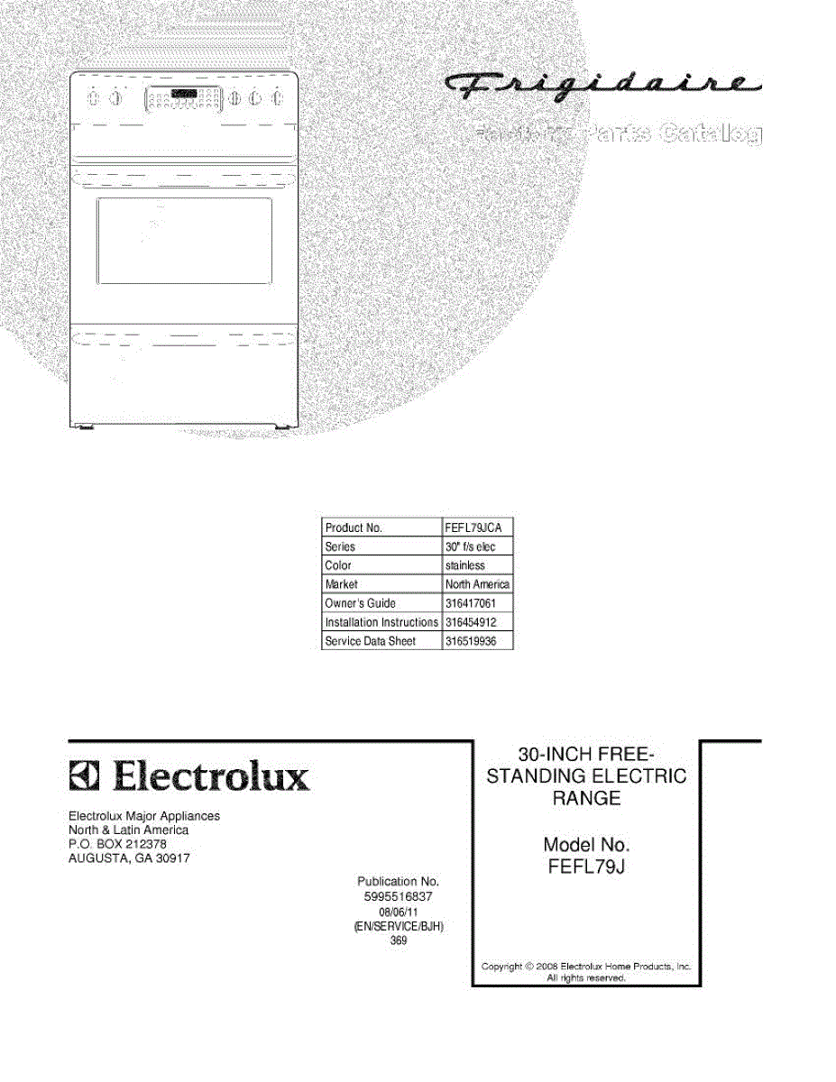 Parts for Frigidaire FEFL79JCA: 01 - Cover Parts