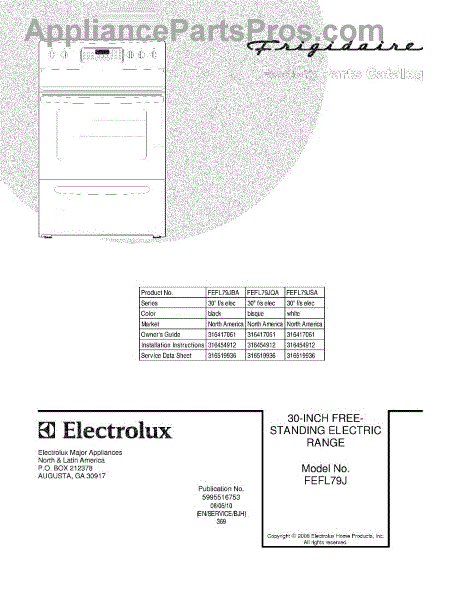 Parts for Frigidaire FEFL79JSA: 01 - Cover Parts