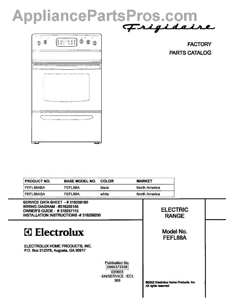Parts for Frigidaire FEFL88ABA: 01 - Cover Parts