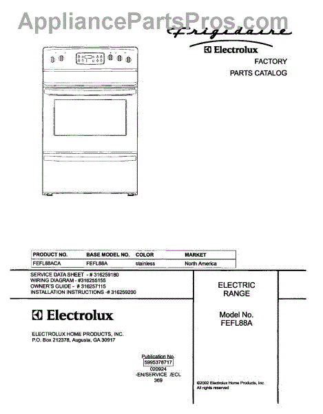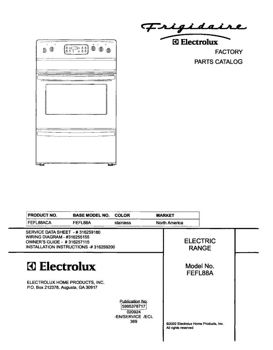Parts for Frigidaire FEFL88ACA: 01 - Cover Parts