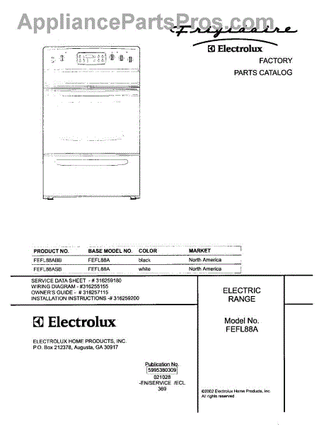 Parts for Frigidaire FEFL88ASB: 01 - Cover Parts
