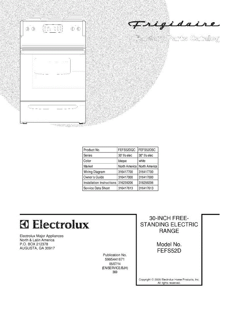 Parts for Frigidaire FEFS52DQC: 01 - Cover Parts