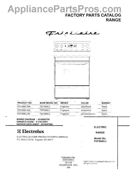 Parts for Frigidaire FEFS68CJBA: 01 - Cover Parts