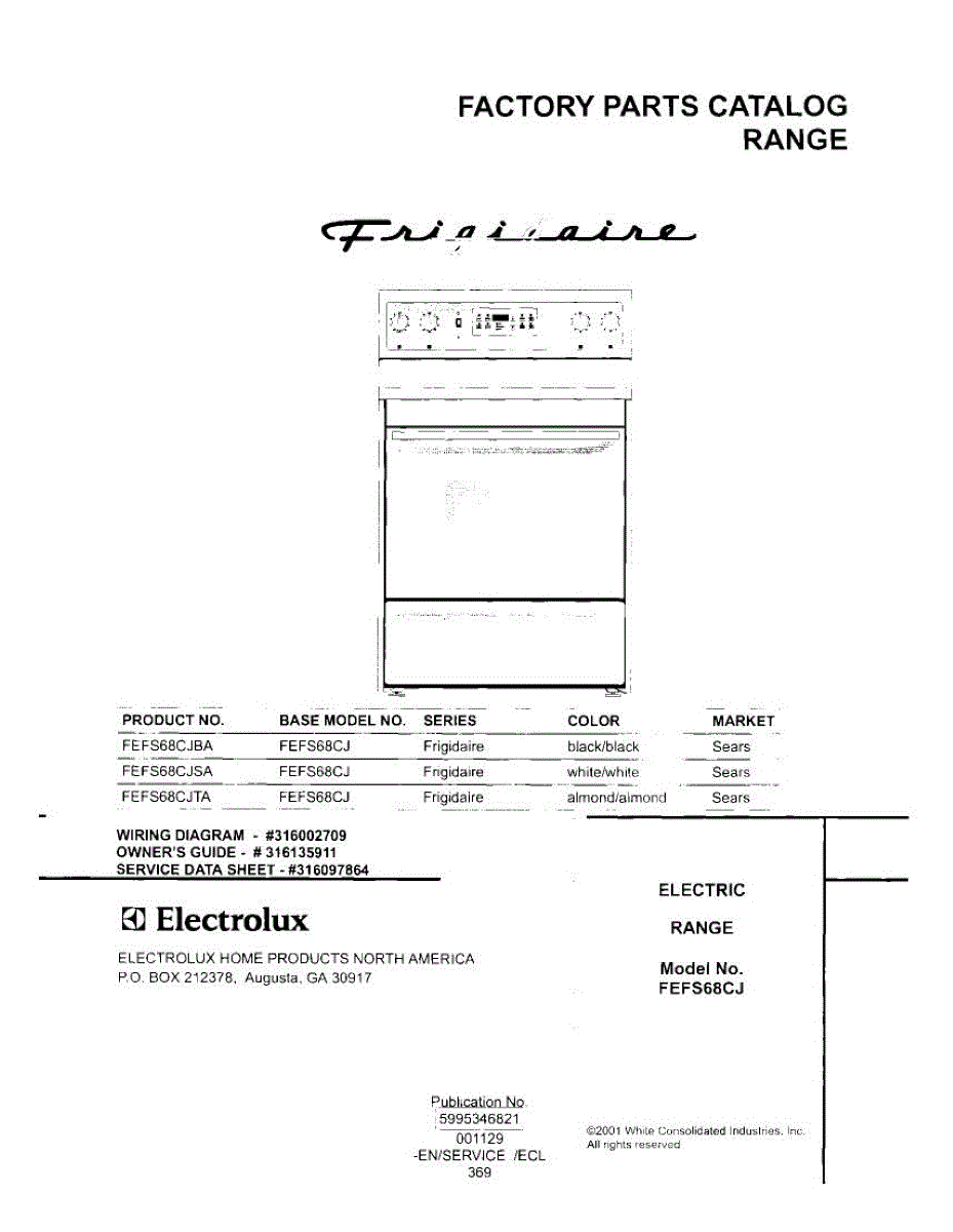 Parts for Frigidaire FEFS68CJTA: 01 - Cover Parts