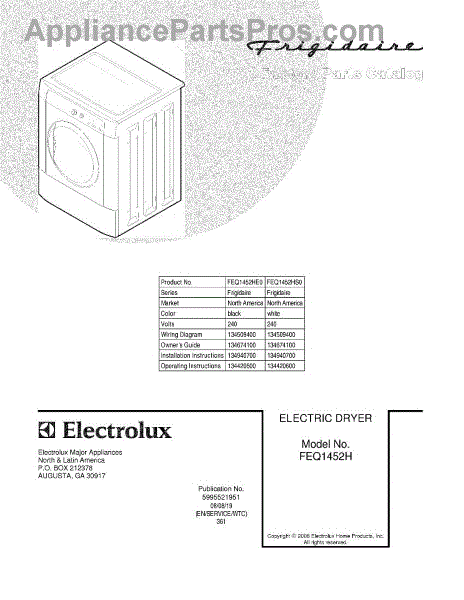 Parts for Frigidaire FEQ1452HS0: 01 - Cover Parts