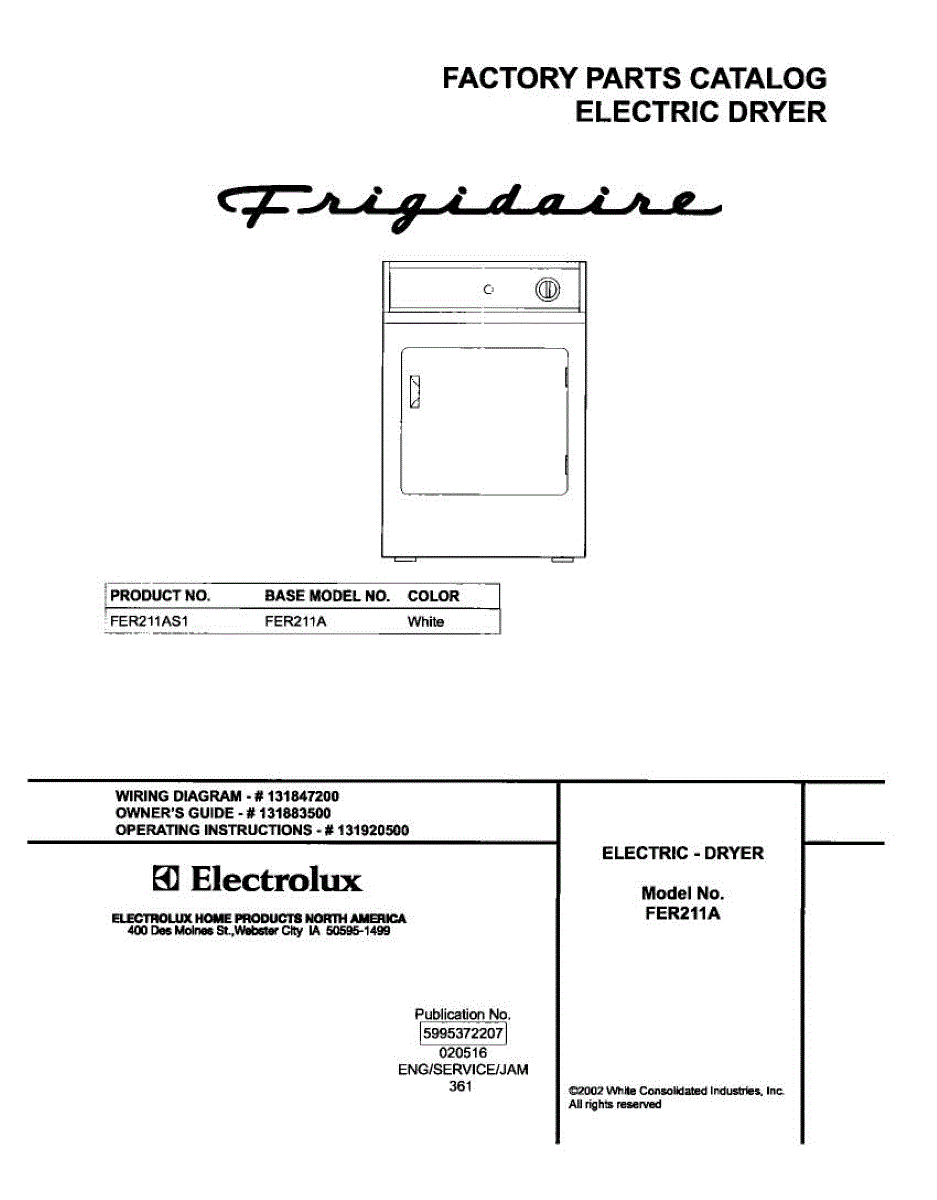 Parts for Frigidaire FER211AS1: 01 - Cover Parts