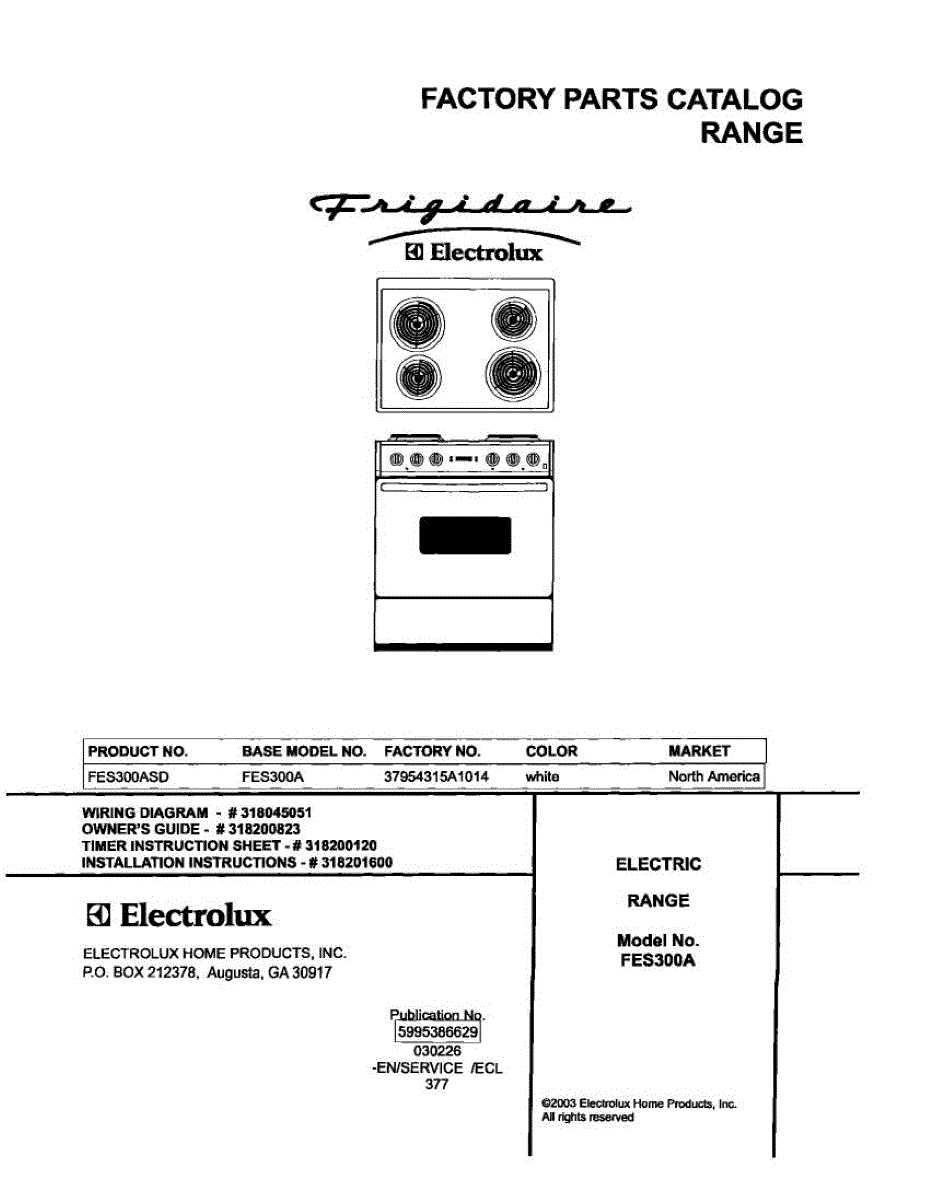 Parts for Frigidaire FES300ASD: 01 - Cover Parts