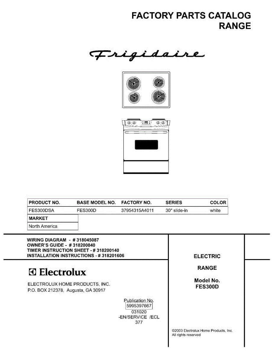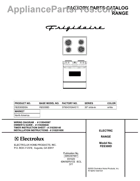 Parts for Frigidaire FES300DSA: 01 - Cover Parts