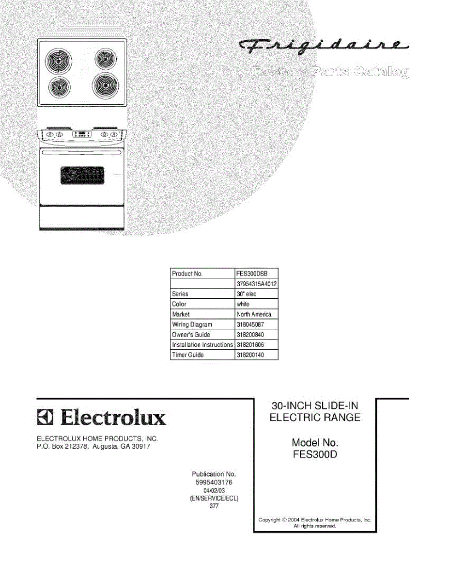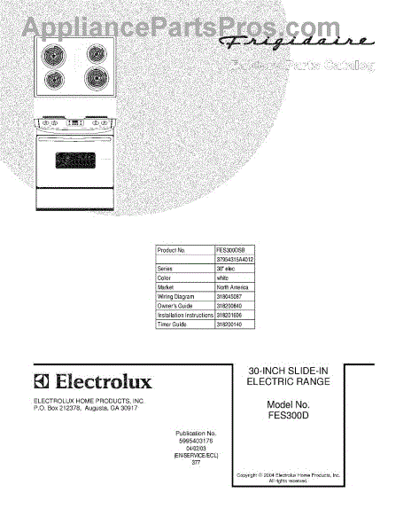 Parts for Frigidaire FES300DSB: 01 - Cover Parts