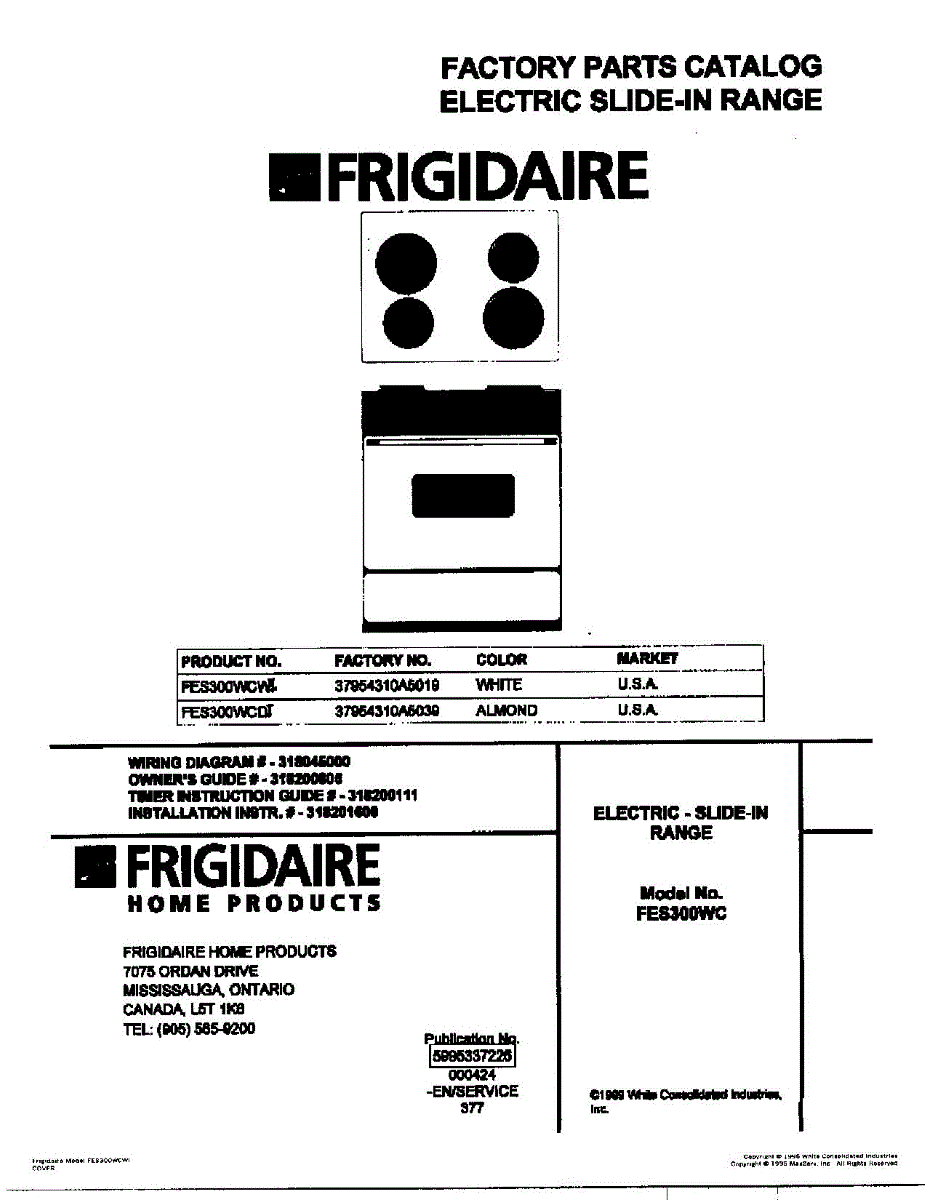 Parts for Frigidaire FES300WCDI: 01 - Cover Parts