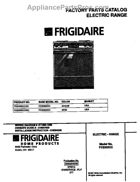 Parts for Frigidaire FES353CCDC: 01 - Cover Parts